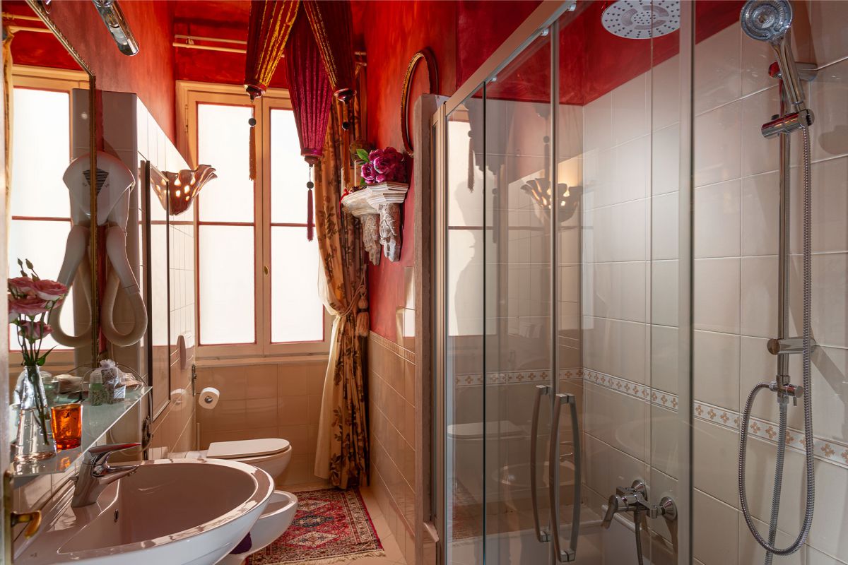 The angels on the door at the entrance invite you to enter and find your privacy. A small kitchen is available for breakfast or fast lunch; the bathroom has a big shower. The view of the canal and the passage of gondolas make the room even more special. You have also the Garden on the ground floor, only for you, to enjoy the Venetian quiet.